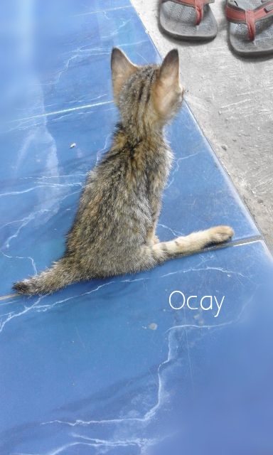 Selang tiga hari kemudian, Oddie mendapat teman yang seusia, namanya Ocay. Kucing dome, yang di rescue di selokan pinggir jalan, dekat tukang soto mie. Sendirian. Entah, dibuang atau ditinggalkan induknya. Yang menyedihkan, kaki Ocay lemah lunglai seakan tak berotot, berjalan mengesot dengan pantatnya. Banyak luka lecet di sekelilingnya.Kalau Ocay duduk, kakinya lurus ke depan. Entah, kenapa kaki Ocay, mungkin terlindas kendaraan, karena ia sendirian di pinggir jalan itu.